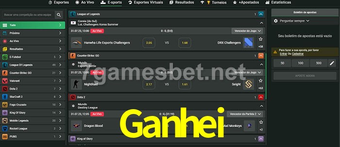 O Ganhei oferece uma grande seleção de opções de apostas em e-sports com probabilidades competitivas